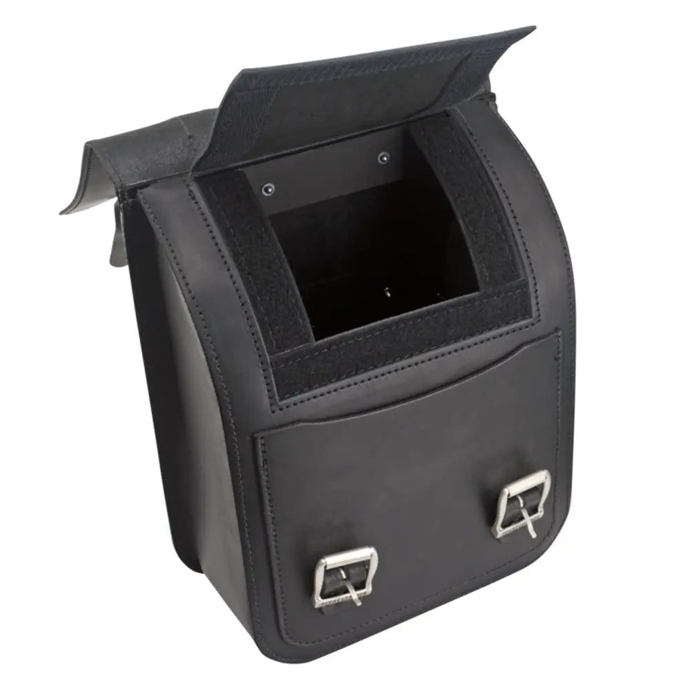 The Texas Leather square swingarm bag is a clean and compact storage option that blends perfectly with your Softail. Made from real leather and mounts neatly on the left side of the motorcycle.