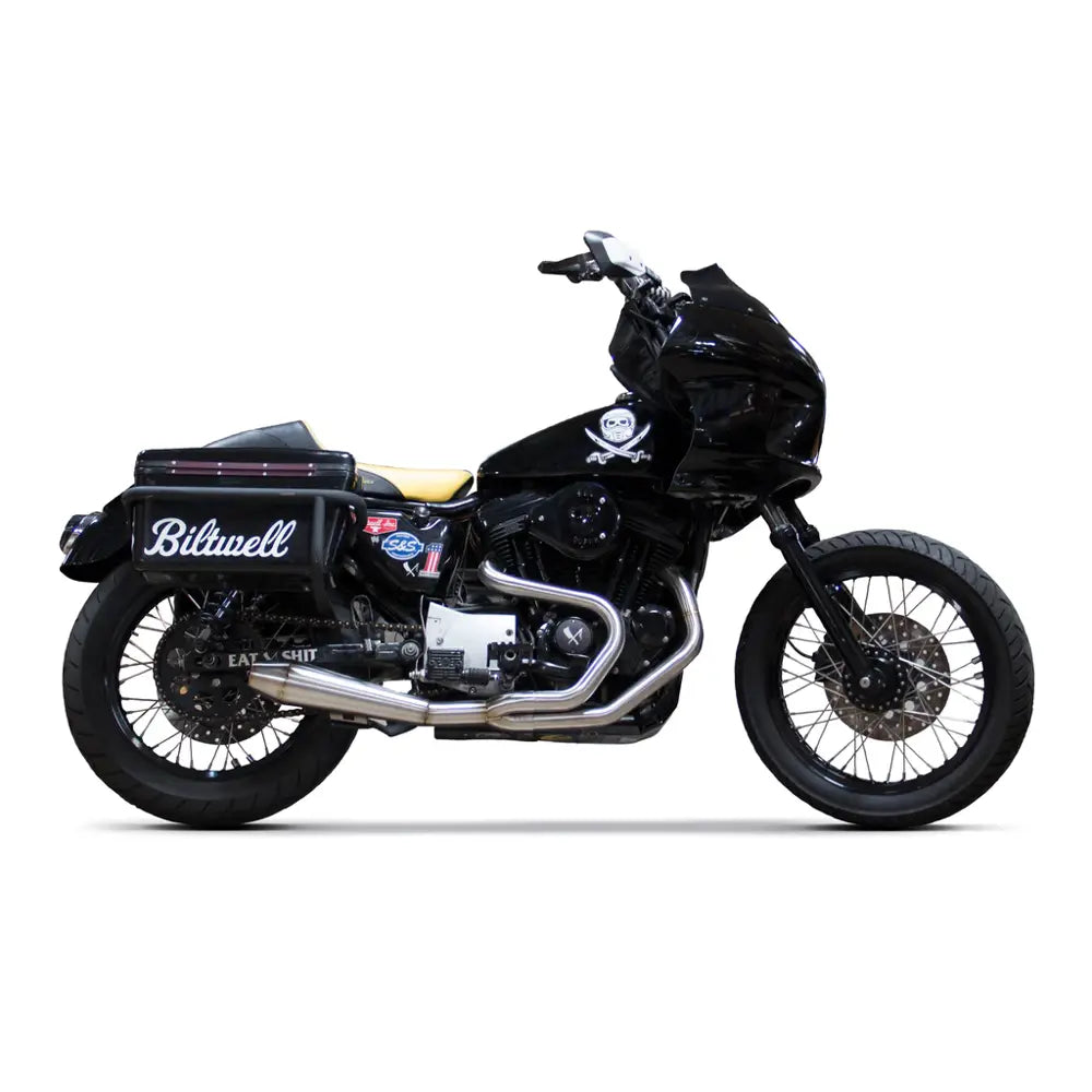 Note for 18-25 Softail (excl. Low Rider ST / Sport Glide / Heritage): This exhaust will fit most types of saddlebags mounted on these models if used with this saddlebag docking relocation kit.