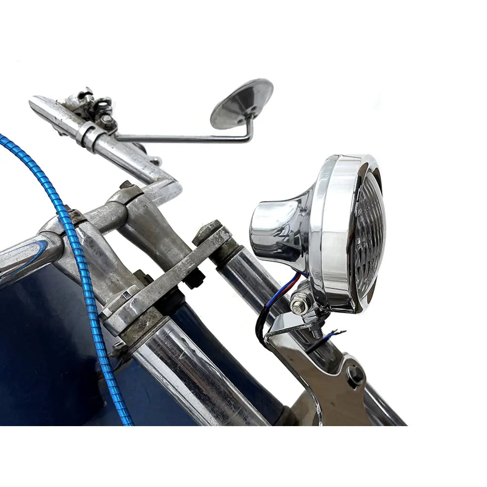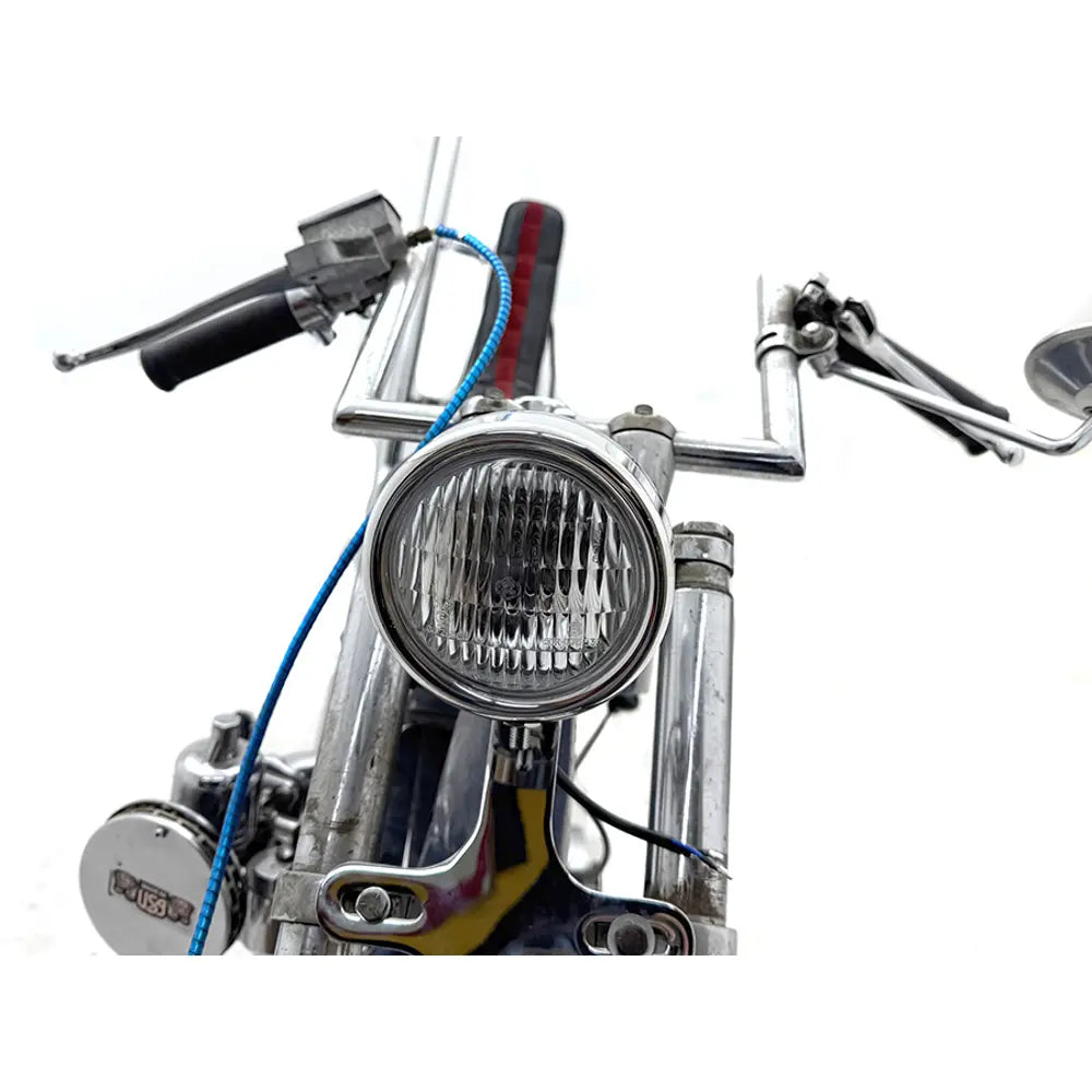This retro-style headlight from V-Twin MFG delivers classic chopper vibes, built to shine bright and look sharp on any custom setup.
