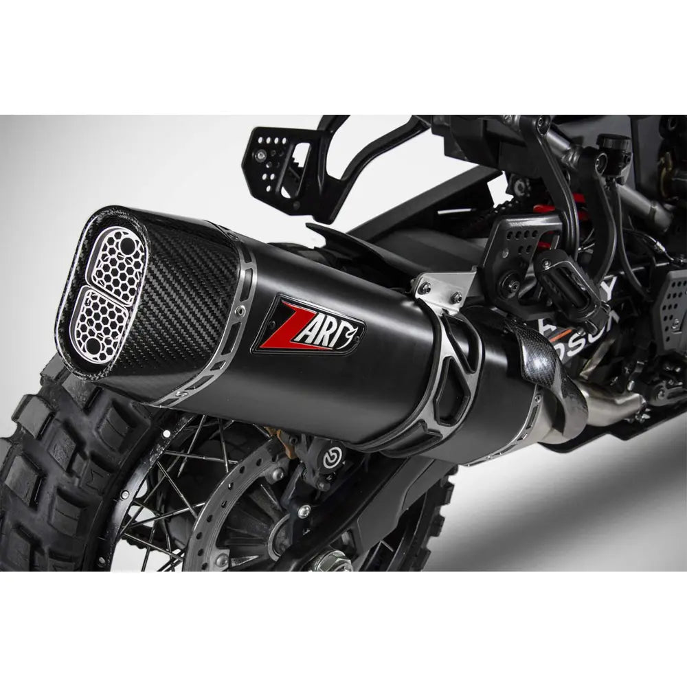 The Zard EC Euro 5 Approved Pan Am Slip-On Muffler is a perfect blend of high performance, durability, and beatiful design, tailored specifically for Harley-Davidson Pan America motorcycles. Crafted from premium AISI 304 stainless steel and finished with a heat-resistant matte black Cerakote ceramic coating, this muffler ensures superior longevity and stunning aesthetics. The carbon fiber end cap and heel guard enhance its sporty appeal while reducing weight for better handling. Fully Euro 5 homologated, it offers a +1.2 hp performance boost while keeping sound levels within legal limits, making it an excellent upgrade for enthusiasts seeking a road-legal, hassle-free installation.